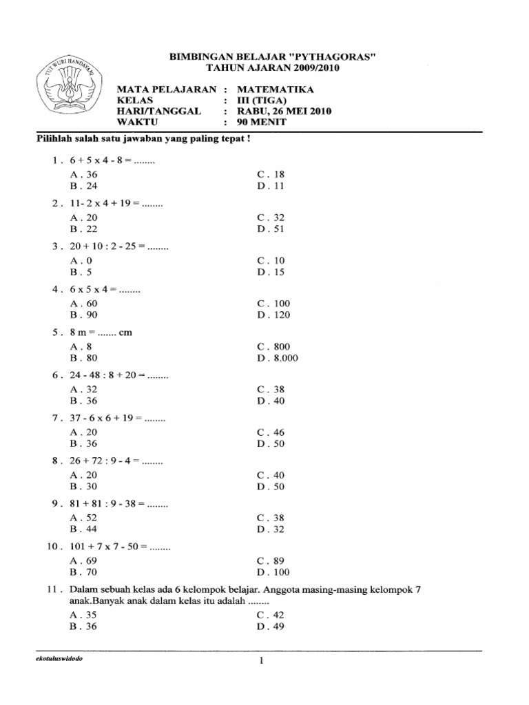 Latihan Soal Dan Pembahasan Uasbn Matematika Sd Kelas 6