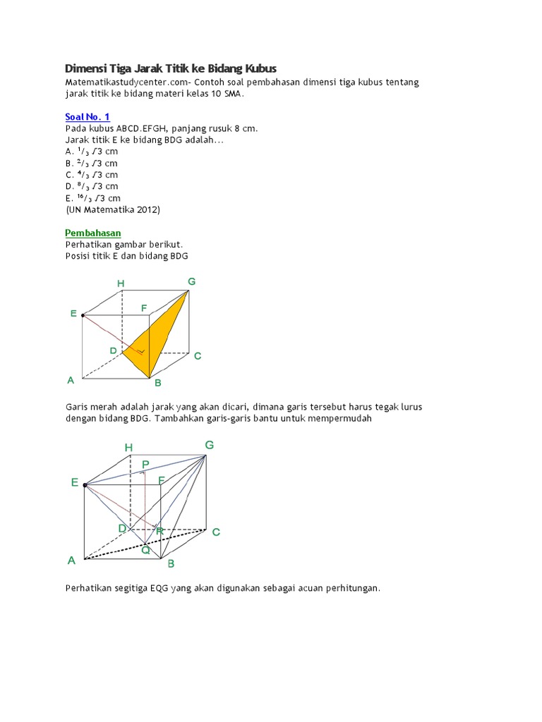 Contoh Soal Pembahasan Dimensi Tiga Geometri Ruang
