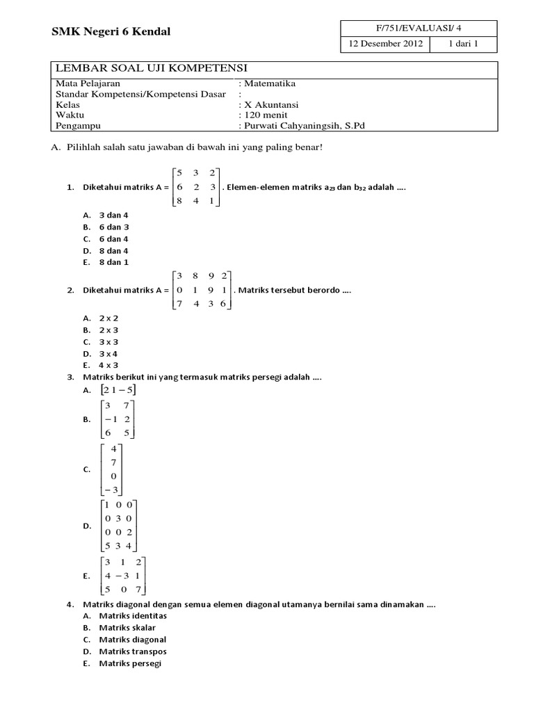 Soal Soal Matematika Kelas 12 Semester 1 Kurikulum 2013 Ayuna