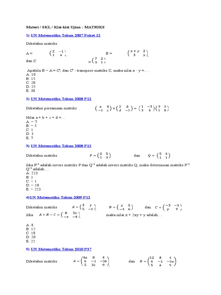 Bank Soal Dan Pembahasan Matematika Dasar Matriks 36 Defantri Com