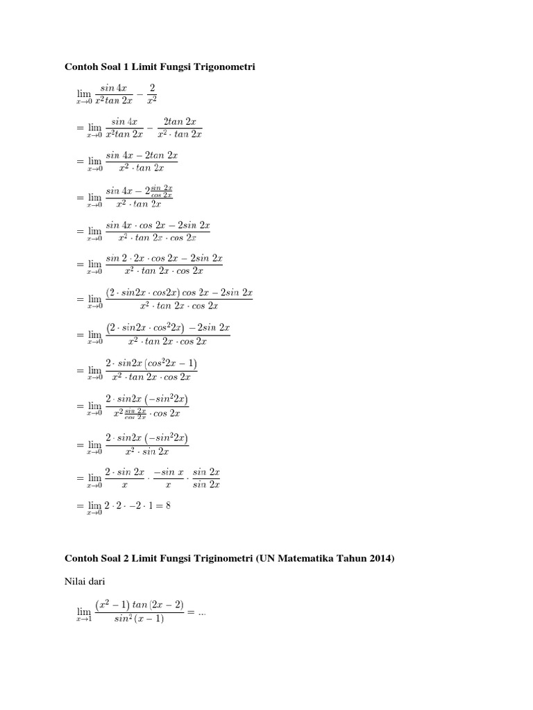 Contoh Soal Limit Trigonometri Terbaru Kelas 11 12