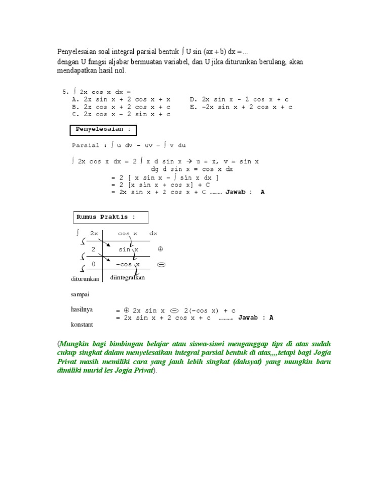 Rangkuman Contoh Soal Dan Pembahasan Integral Parsial Sma Kelas 12
