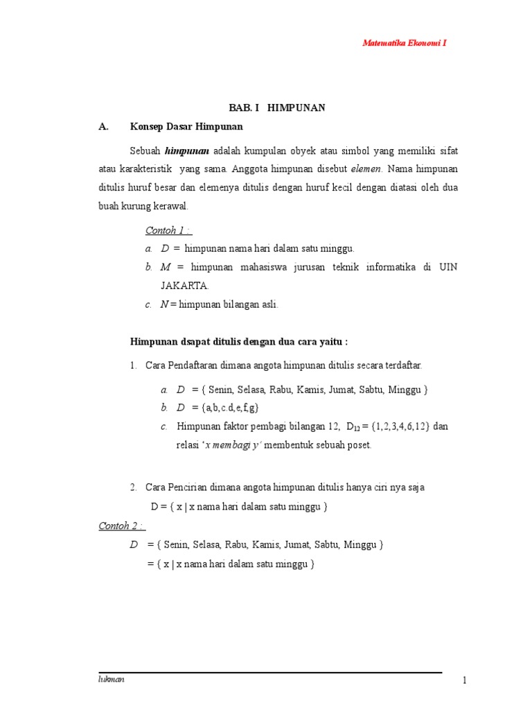 1 Bab I Pengantar Matematika Ekonomi 1 1 Matematika Mafiadoc Com