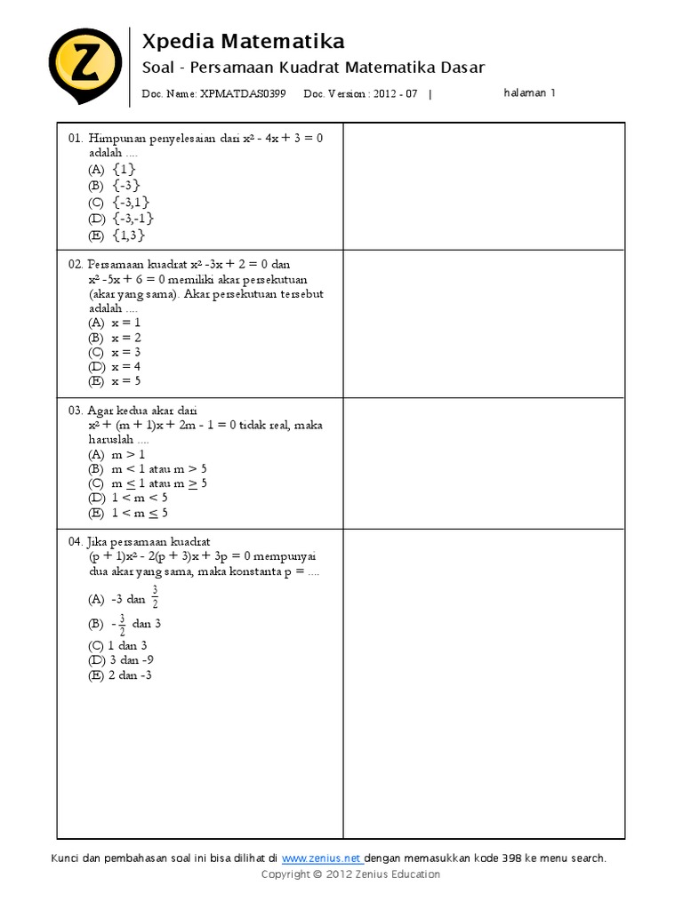 Contoh Soal Dan Pembahasan Persamaan Kuadrat Sma