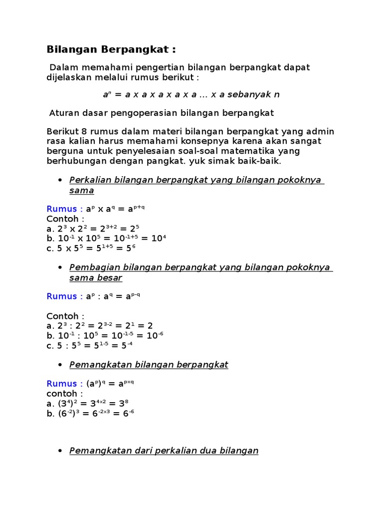 Mengenal Pangkat Tak Sebenarnya Rumus Matematika