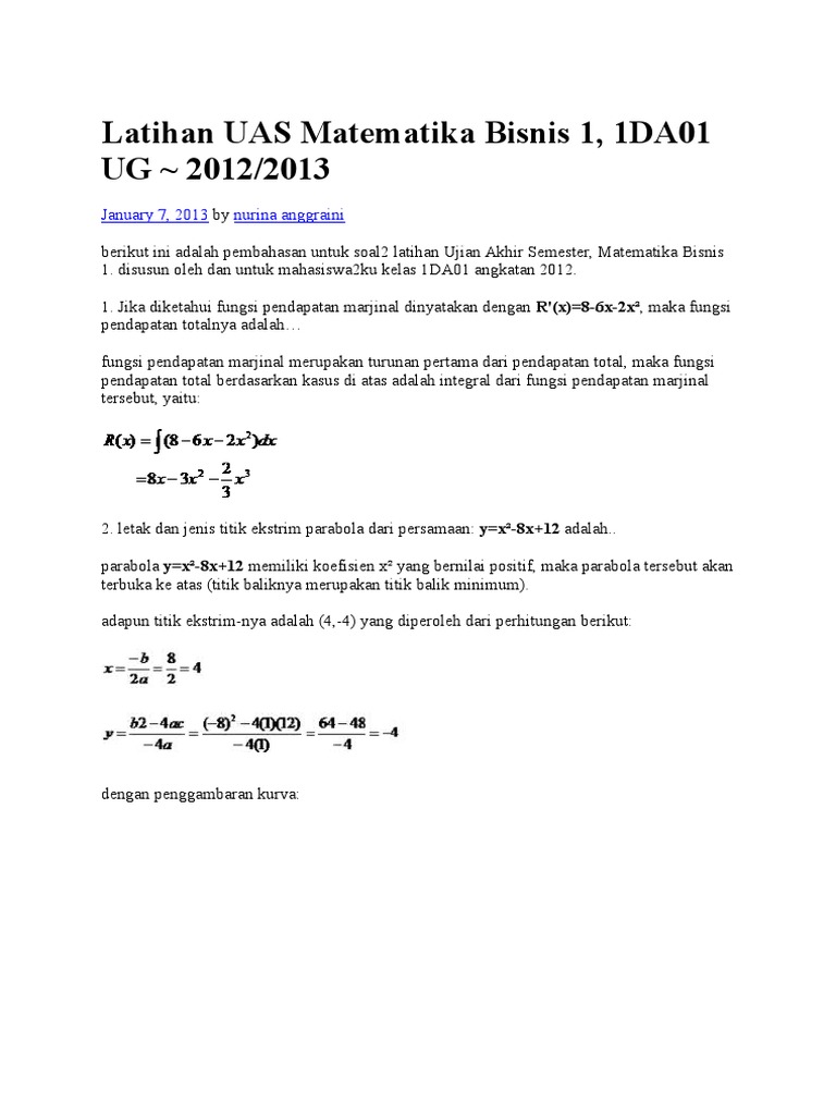 Latihan Uas Matematika Bisnis 1