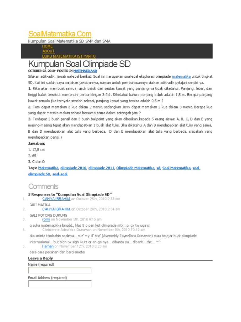 Kumpulan Soal Olimpiade Sd Soalmatematika