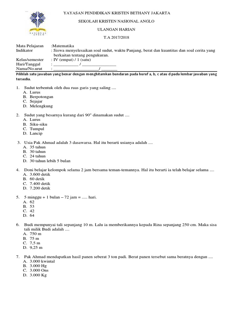 Kumpulan Contoh Soal Contoh Soal Satuan Berat Kelas 3 Sd