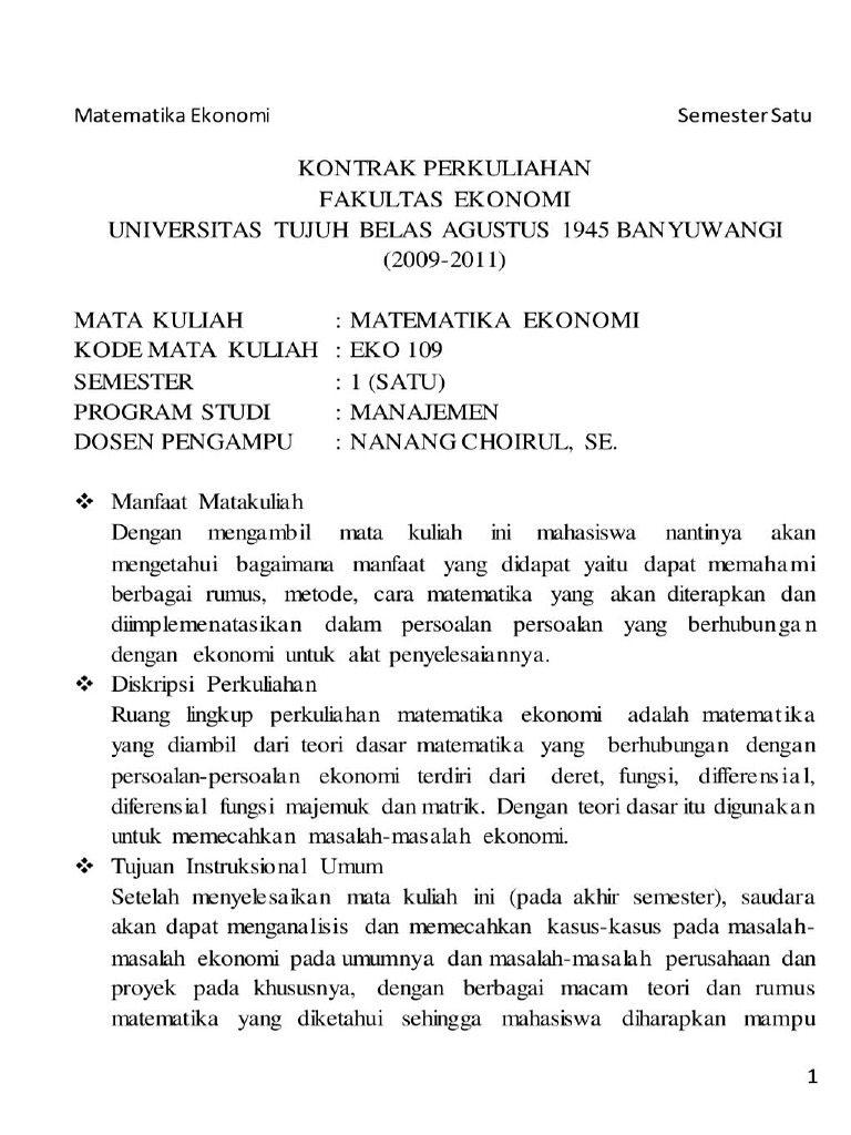 Catatan Matematika Ekonomi Pdf