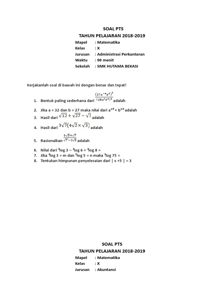 Soal Matematika Pts 1 2018 2019 10 Ap Ak Bc Tkj Tkr