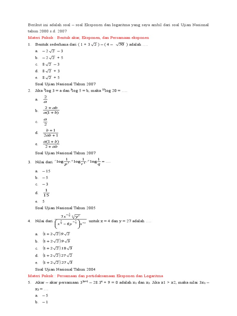 Contoh Soal Eksponen Dan Logaritma Kumpulan Soal Pelajaran 3